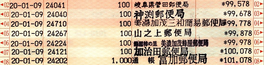 | 2499 | 11 | 東村 | 岐阜県下呂市 | ○ | 通帳切り替えで15分くらい待たされる | |