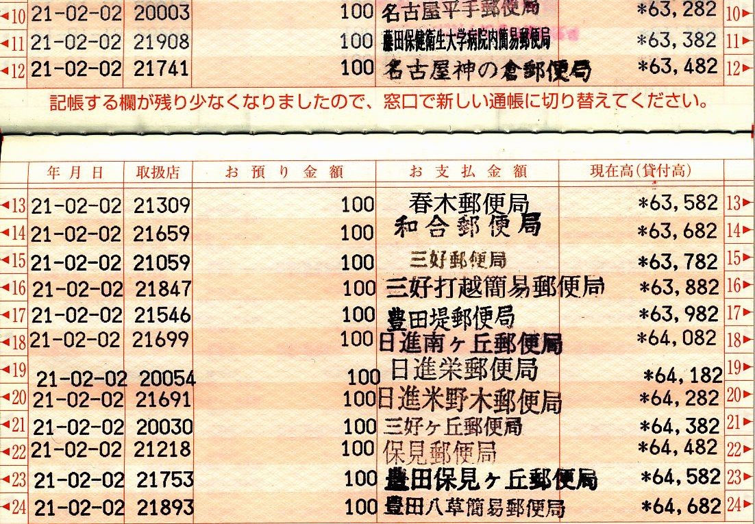 | 3752 | 7 | 三好打越簡易 | 愛知県西加茂郡三好町 (現・みよし市) | ○ | 位置的に分かりづらいが、表通りに看板が出ているので大丈夫 | 2010年3月1日 貯金廃止 2011年2月7日 貯金開始 |